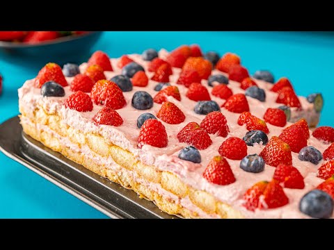 طريقة حلى بارد فاخر بالتوت وليدي فينجر وصفة تشيز كيك بدون فرن